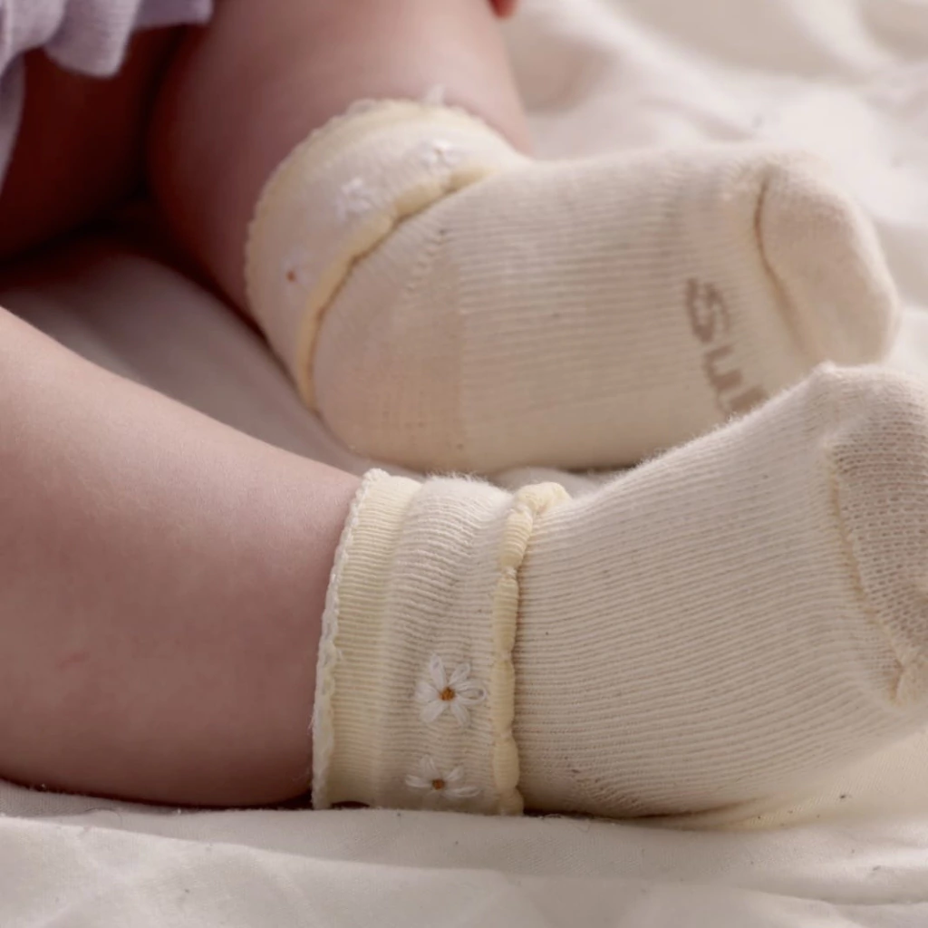Meia Bebê Margaridas Bordadas- O toque de fofura que a sua menininha estava esperando! 🌸