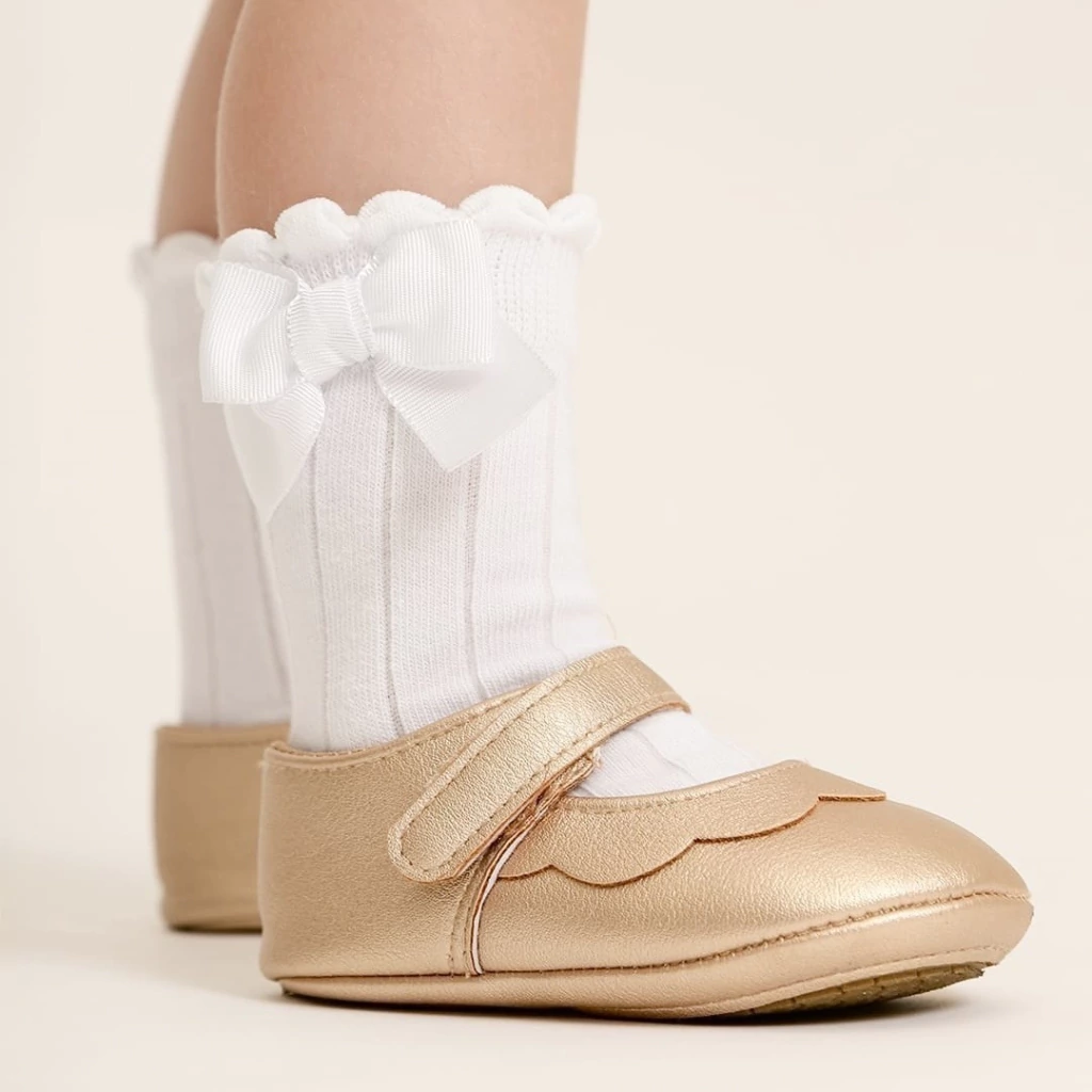 Dê um toque especial ao dia a dia da sua pequena com a Meia Canelada Branca Laço e faça com que cada passo dela seja repleto de estilo! ❤